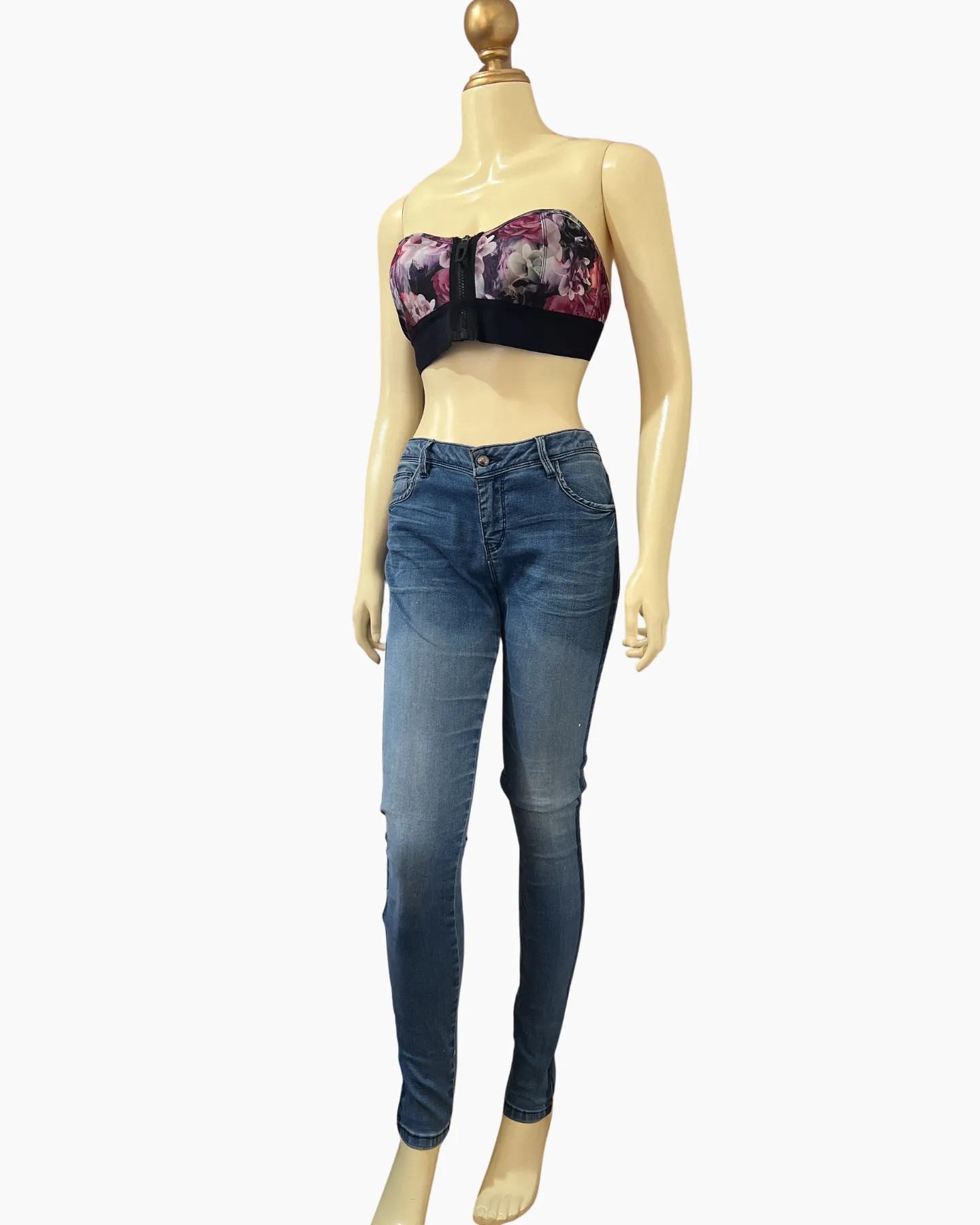 These mid-wash skinny jeans feature a classic five-pocket design with subtle fading along the thighs and knees for a naturally worn-in look. The stretchy denim fabric offers a snug, form-flattering fit from waist to ankle. Finished with a standard button-and-zip closure, these jeans are perfect for everyday casual wear and easy to pair with a variety of tops and shoes.